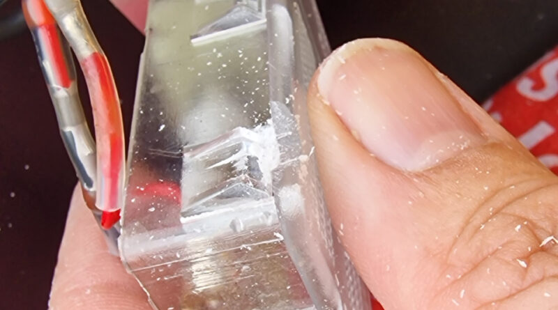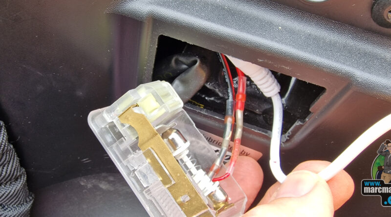 Damit der LED-Streifen an die originale Lampenfassung angeschlossen werden kann, habe ich mir einen passenden Soffitten-Adapter* besorgt. Dieser wird einfach anstelle der Birne in die Fassung gesteckt, und die Kabel können dann über das Kabel mit Stecker* direkt mit dem LED-Streifen verbunden werden – ganz ohne Löten oder Basteln am Kabelbaum. Dazu habe verwende ich meist, die wasserdichte Schrumpfverbinder*. Halten bombenfest und sind wasserdicht. Das Einzige, was man dazu benötigt, ist eine Zange, um die Kabel etwas abzuisolieren und ein Feuerzeug.