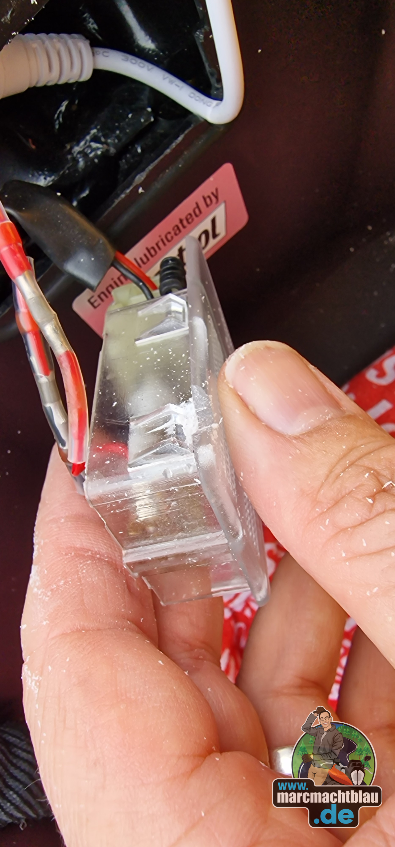 Mein erster Schritt war der Austausch der klassischen Birne gegen eine LED-Variante. Das hat schon deutlich geholfen: Das Licht war heller, klarer und stromsparender. Aber gerade jetzt im Herbst und Winter hat mich gestört, dass der vordere Bereich des Helmfachs kaum ausgeleuchtet wurde.