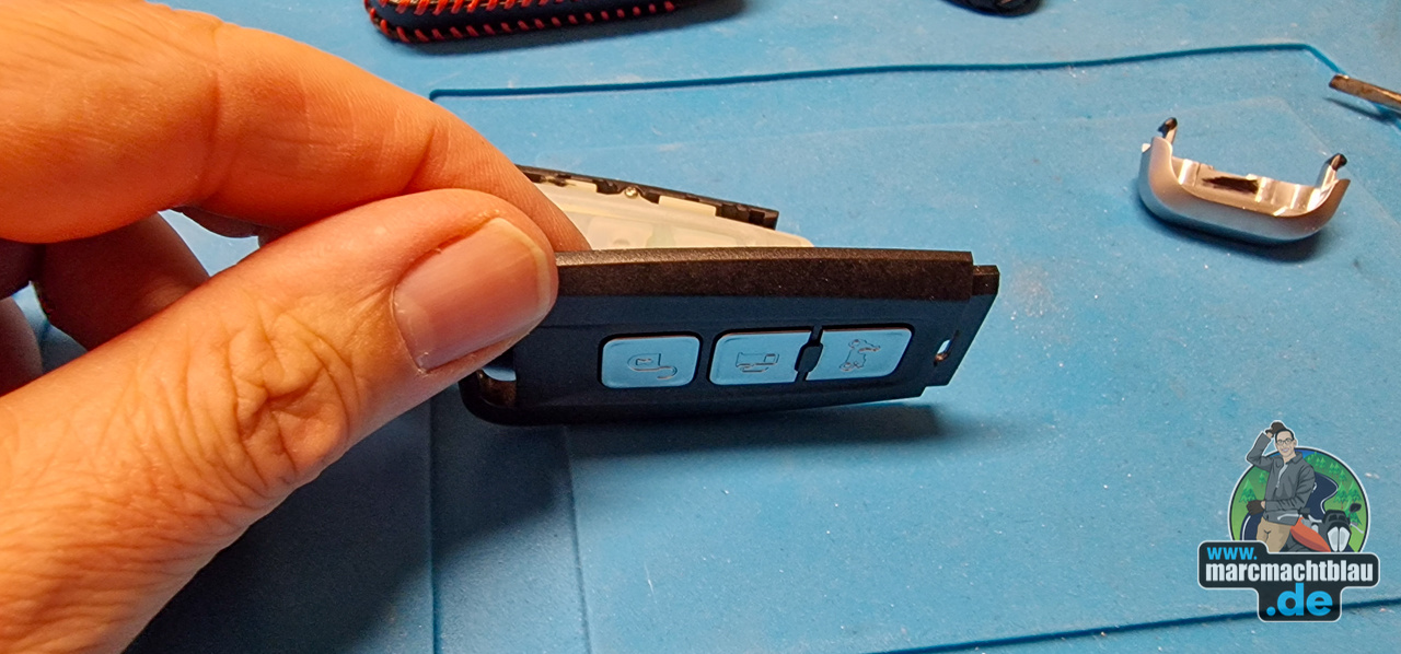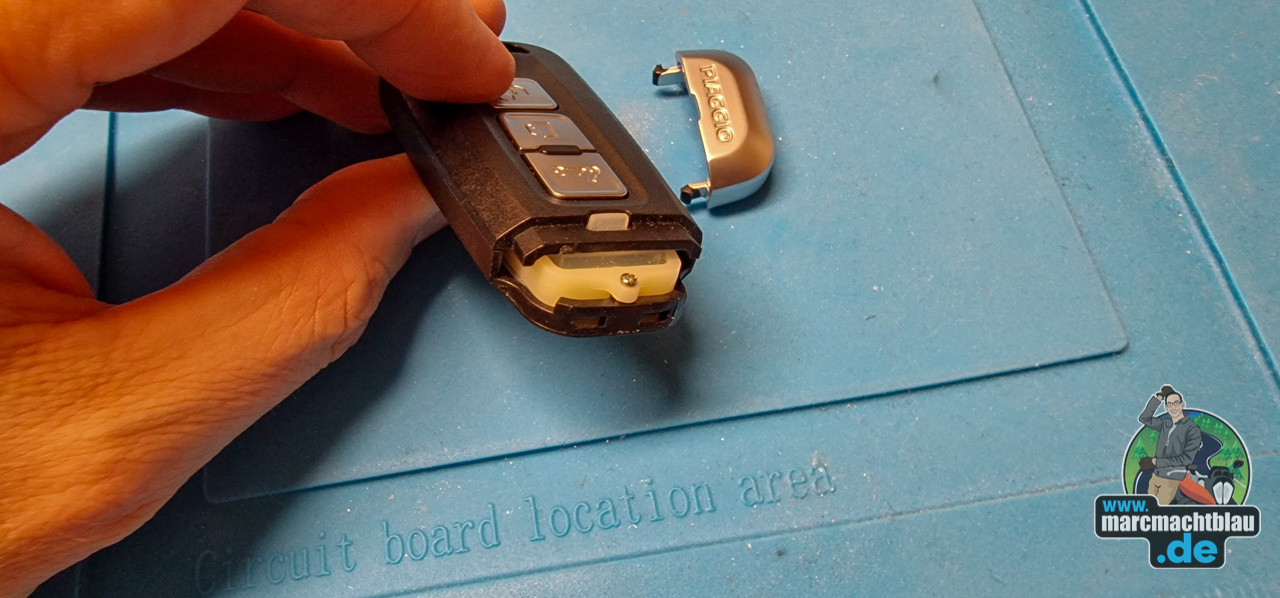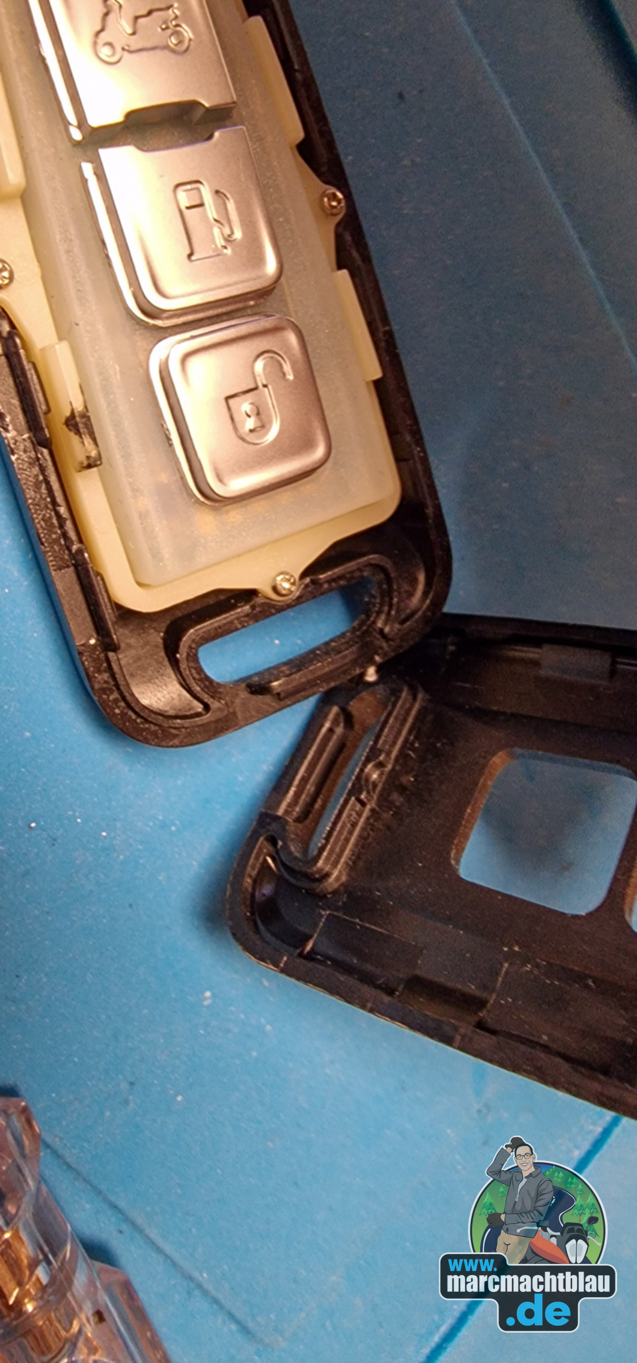 - Vorbereiten: Keyless-Schlüssel außen trocken abwischen. Such dir gutes Licht.