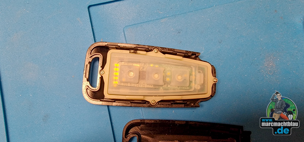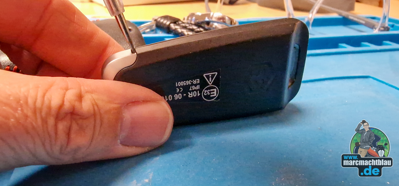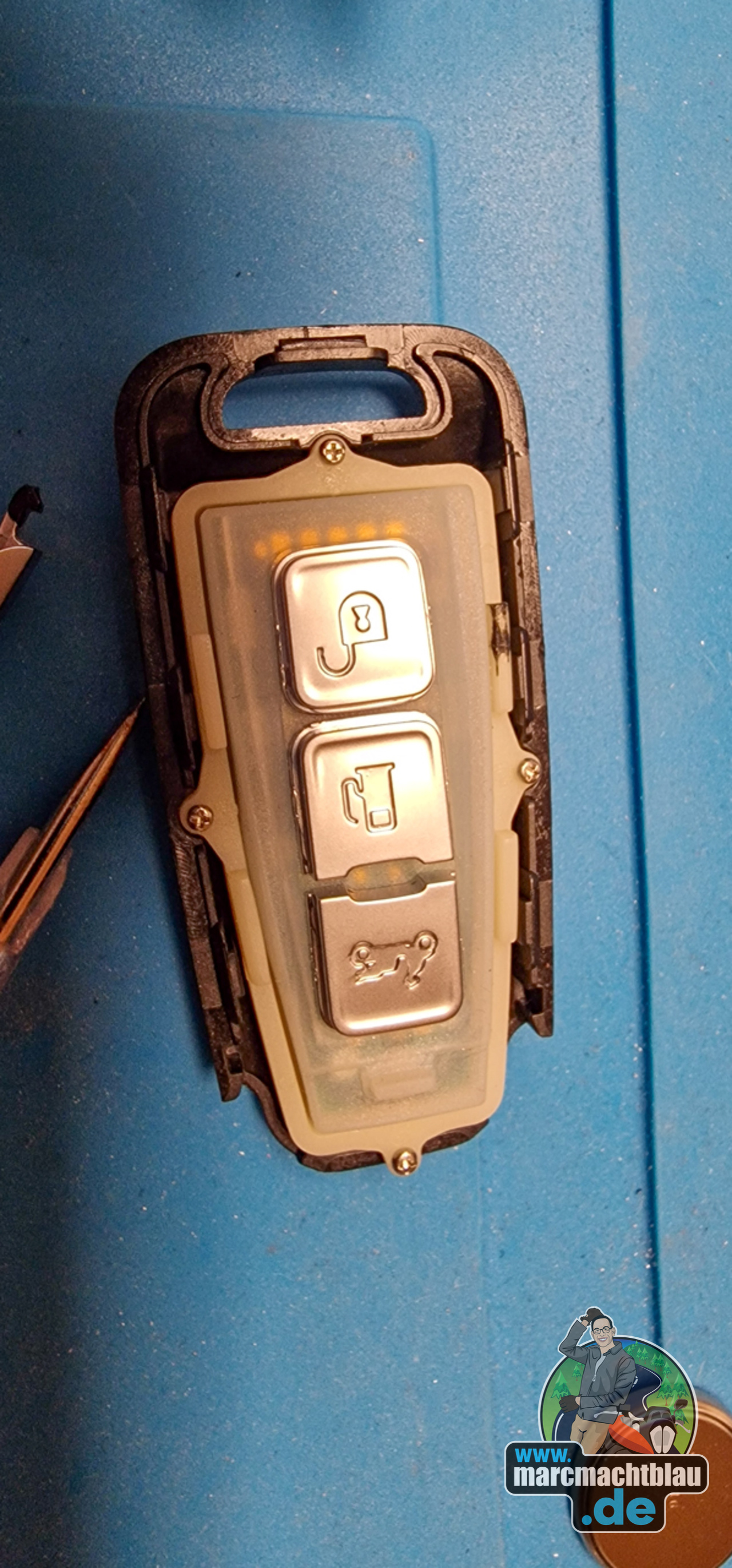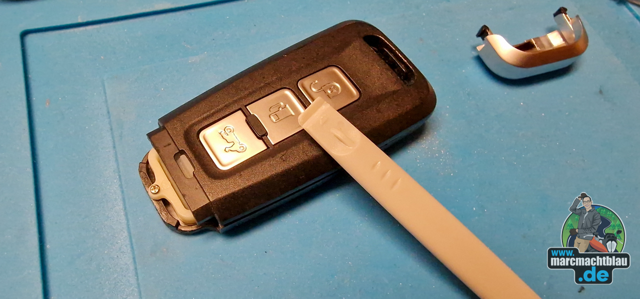 - Vorbereiten: Keyless-Schlüssel außen trocken abwischen. Such dir gutes Licht.