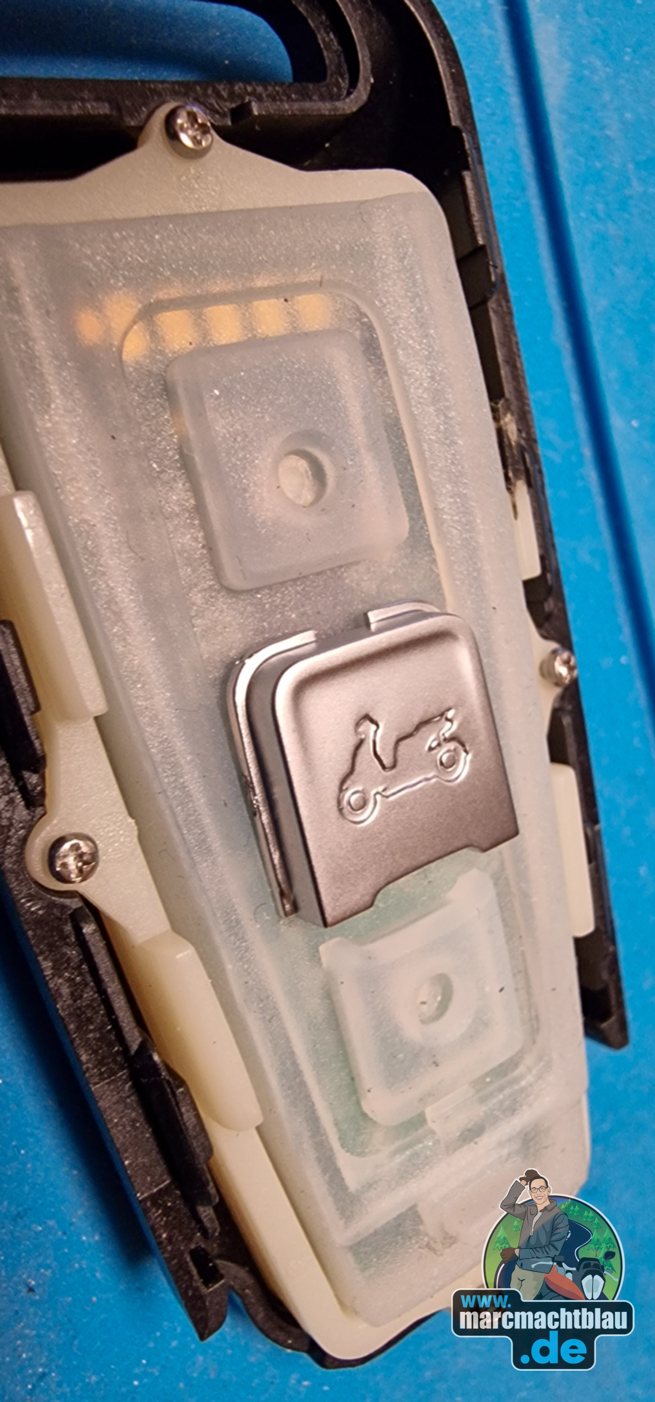 Und hier gibt es einen Trick: Ihr müsst oben anfangen am Ring, wenn dieser zu ist, geht der Rest einfacher. - Funktionstest: Zum Roller gehen: Reagiert das System (LED/Schalter, Zündung, Verriegeln/Entriegeln)?